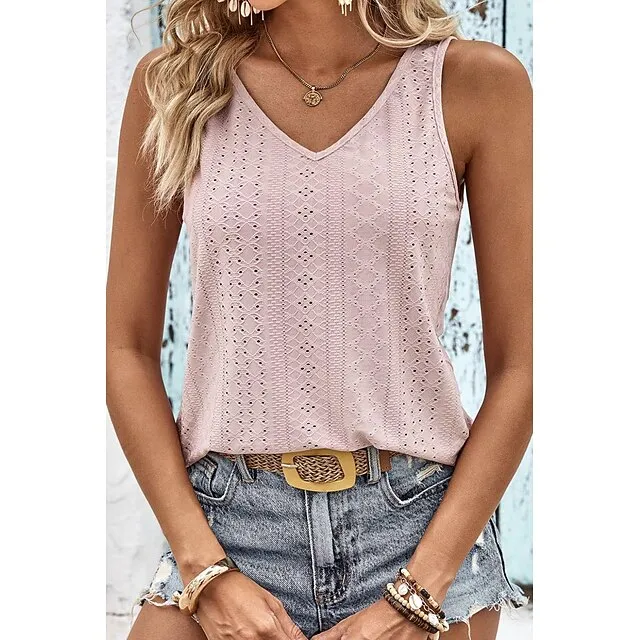 Tank Women's Black White Yellow Solid Color Cut Out Street Daily Fashion V Neck S