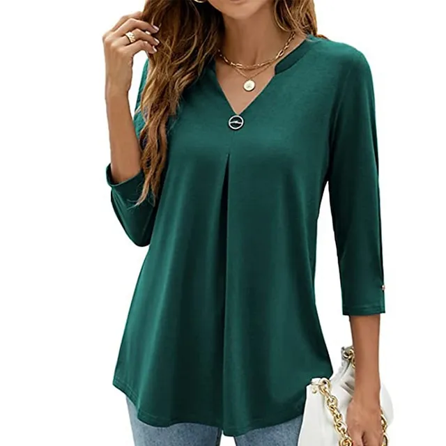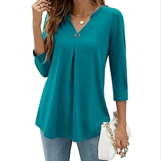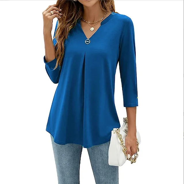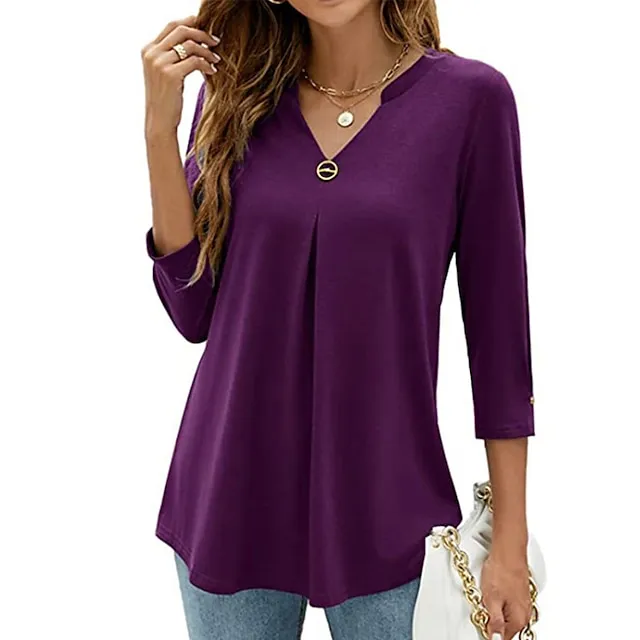 Women’s Shirt Blouse Tunic Black White Pink Plain Flowing tunic 3/4 Length Sleeve Daily Weekend Streetwear Casual V Neck Regular S